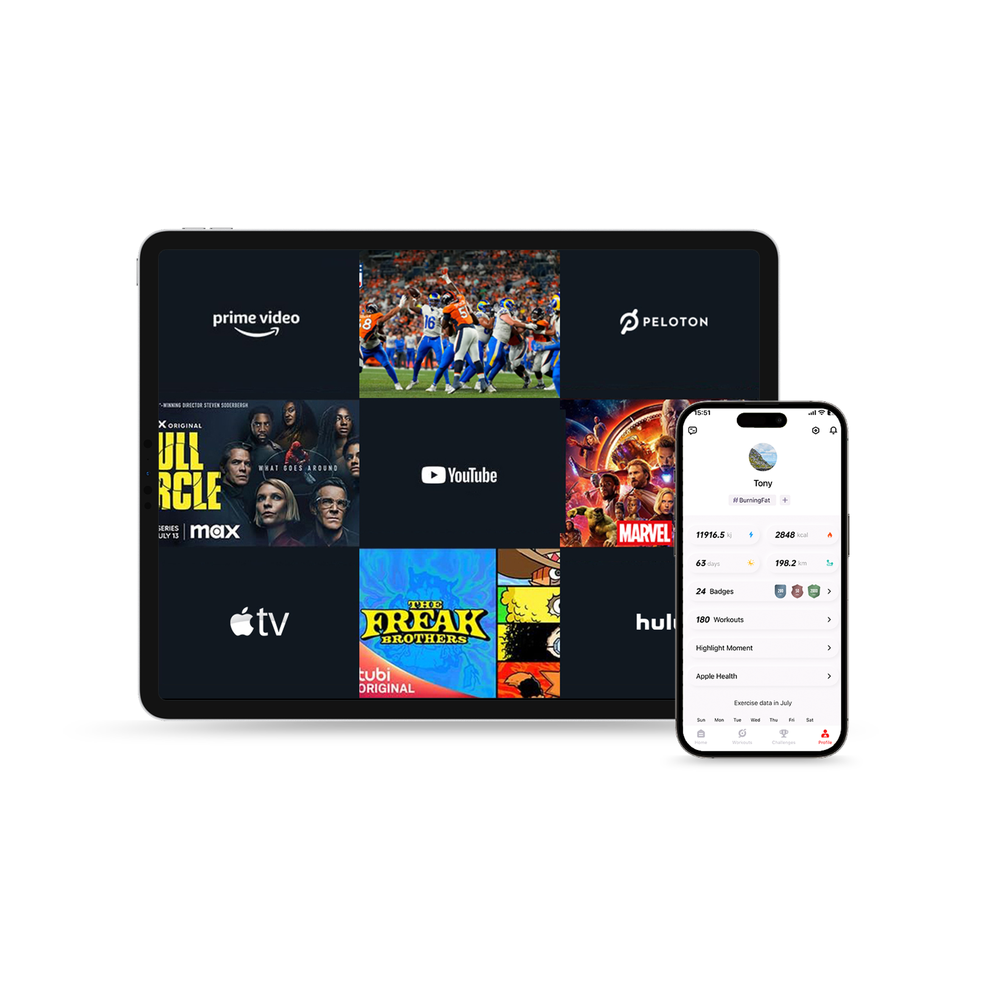 Avec le T3S Plus, vous pouvez diffuser votre application Peloton sur grand écran — sans abonnement Accédez librement à des entraînements de qualité supérieure, selon vos propres conditions.